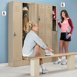 PENCO 1-Tier Lockers feature a vanguard handle that pulls out with natural easy action.16-gauge steel door and frame; 24-gauge steel body. Ventilated louvered doors with double-strength hinge. 13-gauge steel latch hooks. Includes coat hooks, hanger rod (18" only), top shelf and 6"H legs. Vanguard handle accepts padlocks, mounted combination locks, or keyed locks. Your choice of unassembled or set-up lockers. Number plates are included on drop ship lockers. For in stock lockers, use item number 57595. NOTE: Set-up lockers are not returnable.NOTE: Shown with optional bases.