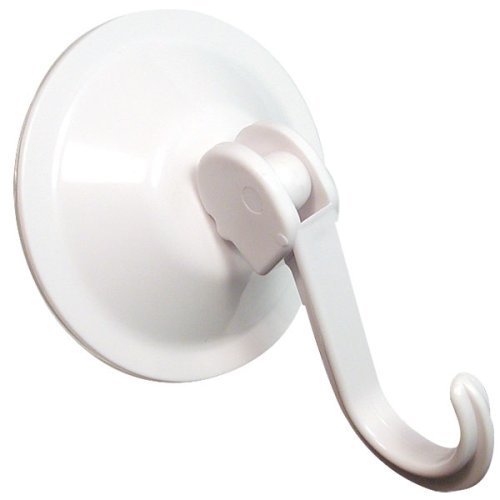 8 White Plastic Hooks - Easy-to-use...Hooks adhere to wall or cabinet by suction cup on back,
